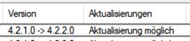 2) In dem Pop-Up Fenster sehen Sie in der Spalte Version die Versionsnummer ihrer Lizenzdatei und ob eine aktuellere Version vorliegt. Gleichzeitig sehen Sie in der Spalte Aktualisierungen den Text „Aktualisierung möglich“.